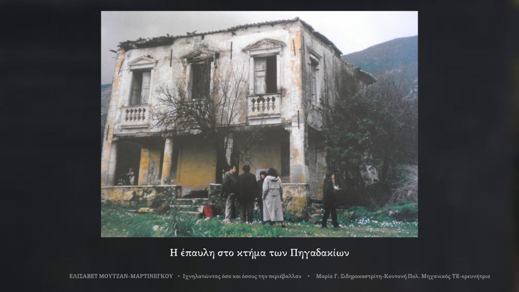 Το κτήμα στα Πηγαδάκια όπου η Ελισάβετ απολάμβανε απλά πράγματα όπως το να καθεται στην πόρτα, να προβαίνει στο παραθύρι χωρίς τις “τζελουτζίες” (τα καφασωτά που έφραζαν τα παράθυρα του σπιτιού στην πόλη), να βλέπει τη φύση, να αισθάνεται το αεράκι, να μυρίζει τα αρώματα να πηγαίνει στην εκκλησία, να ακούει τα πουλιά και ένα μακρινό βιολί! (Ε, Μουτζάν Μαρτινέγκου, Αυτοβιογραφία, εισαγωγή σημειώσεις Κ. Πορφύρη, Αθήνα 1983, ο.π., σ. 29). Σήμερα ανήκει στους κληρονόμους της αδελφής της Μαρίας Μουτζάν, κόμησσας Μερκάτη. Σε συμβόλιαο του 1931 “η Ελένη ποτέ Νικολάου Λούτζη χήρα Καμίλου Μερκάτη το παραχώρησε στον υιό της Κάρολο ποτέ Καμίλου Μερκάτη”. Αναφέρει δε πως ήταν προικώο της. Πιθανολογείται πως ο Νικόλαος Λούτζης αγόρασε από τους κληρονόμους Μουτζάν το κτήμα και τους το επέστρεψε ως προίκα της κόρης του Ελένης.