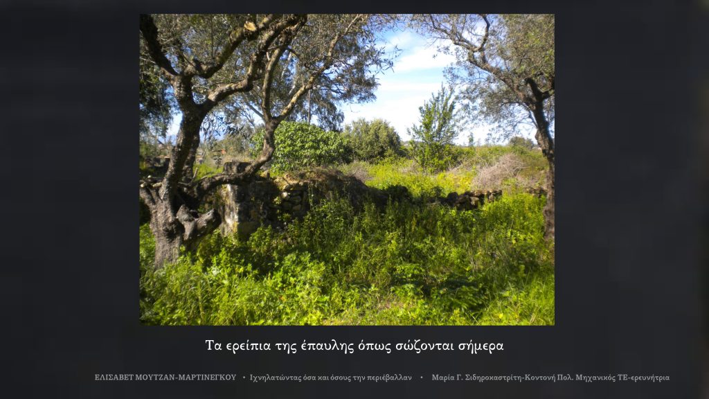 Επίσης στο κτήμα μέχρι την δεκαετία του 1980 υπήρχε ένα διώροφο σπίτι με νεοκλασσικά στοιχεία, λαβωμένο από τον σεισμό του 1953, φωτογραφία του οποίου βλέπουμε μετά από ευγενική χορηγία της οικογένειας όπως και την αποτύπωση της υπάρχουσας τότε κατάστασής του. Σήμερα έχουν απομείνει μόνο τμήματα των θεμελίων του.