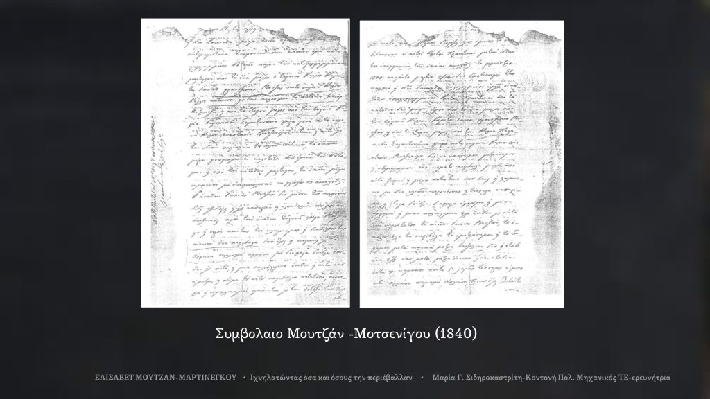 Σημ. Σ.: Θερμές ευχαριστίες για την συμβολή τους στην παρούσα έρευνα στις/στους: Μαρία Παρπαρία Μίκαϊτς το γένος Μαρτινέγκου και Ντομένικα Μίκαϊτς απογόνους της Ελισάβετ Μουτζάν Μαρτινέγκου, Γεώργιο Ζουρίδη και Στέφανο Ι. Παπαδάτο απογόνους της Μαρίας Μουτζάν κόμησσας Μερκάτη, Αννίτα Παναρέτου, Δανάη Μυλωνάκη, Διονύσιο Πάστρα, Διονύσιο Φουρνογεράκη, Διονύσιο Γκούσκο και Ιωάννη Πορφύρη Καποδίστρια.